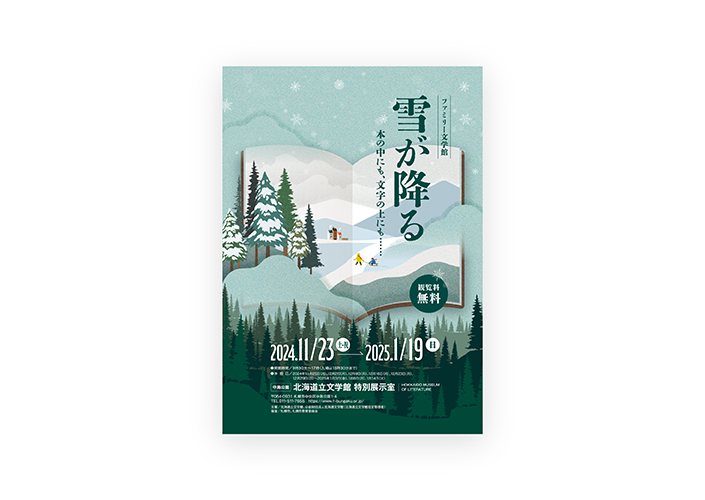 北海道立文学館 特別展示室「ファミリー文学館 雪が降る」 2024.12.1 各種印刷物 Product:北海道立文学館 特別展示室「ファミリー文学館 雪が降る」チラシ、ポスターを手掛けました。 コメントは利用できません。